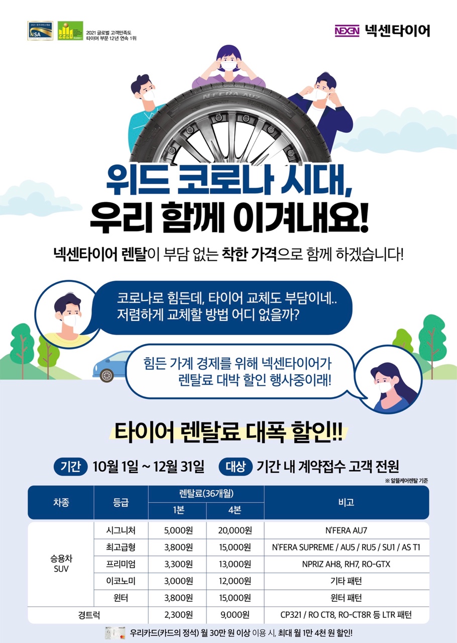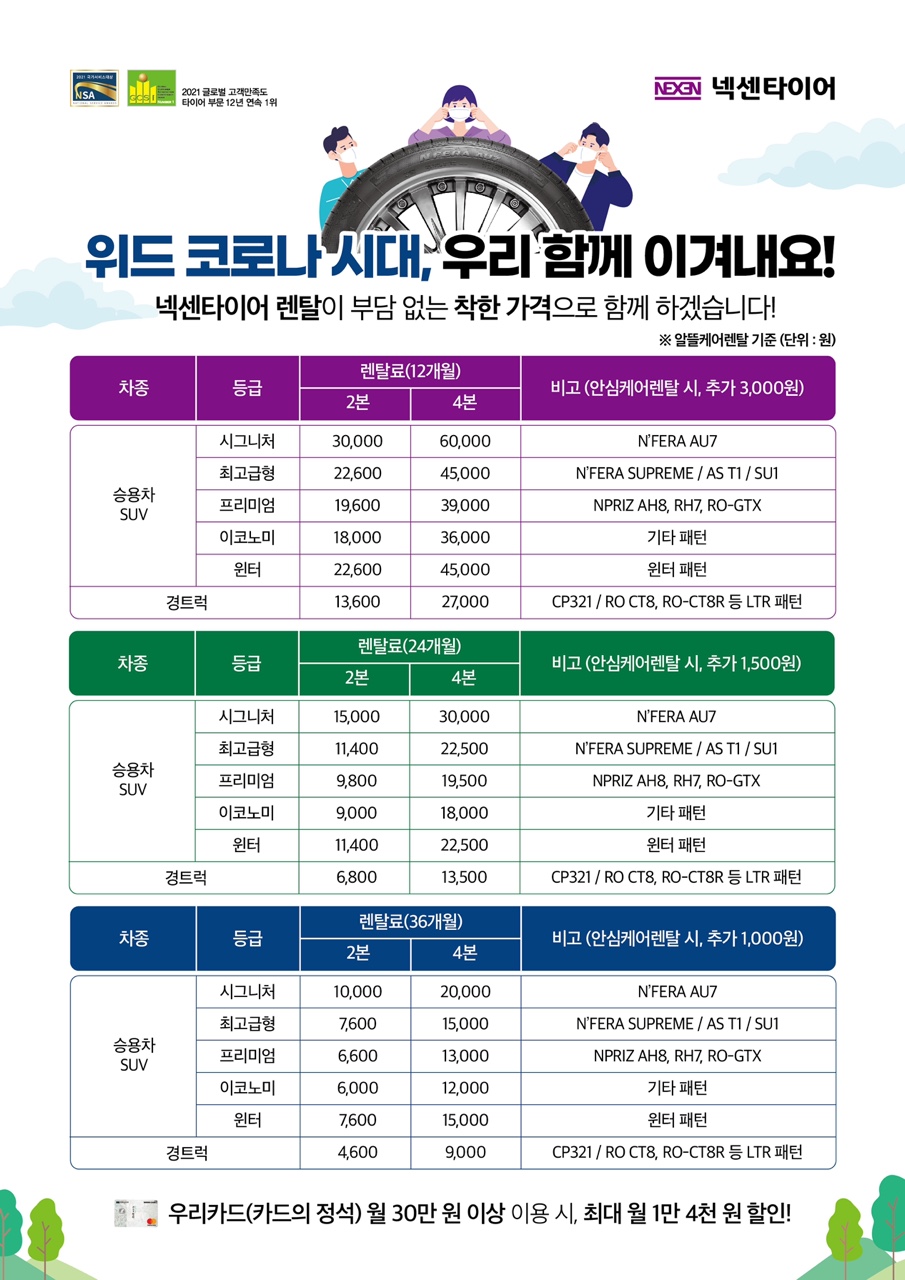 -. 위드 코로나 시대, 우리 함께 이겨내요! (타이어 렌탈료 대폭 할인!)