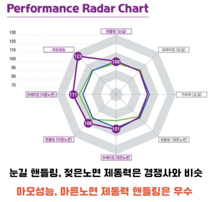 눈길, 빗길 성능과 더불어 일반 주행시에도 우수한 제동력, 높은 주행 안정성과 핸들링 성능을 가졌답니다.